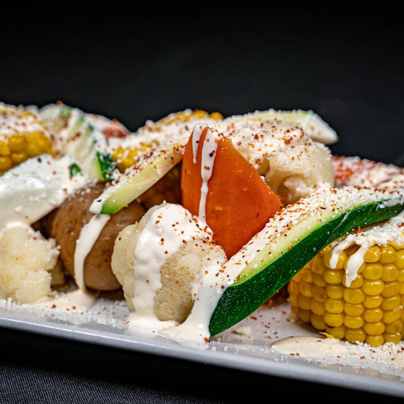 Corn, potato, zucchini, carrot, cauliflower, lime aioli, queso cotija.